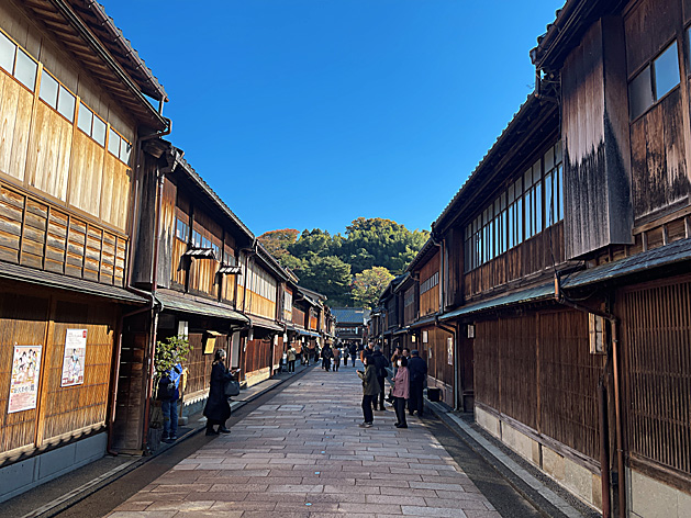| 古い街並のひがし茶屋街。午前11時10分頃。重要伝統的建造物群保存地区。かつて茶屋街として賑わった街並が保存されています。趣があります。 |